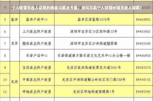 摘要:个人经营所得无收入证明是一个现实挑战,特别是在经济环境和市场竞争多变的背景下。本文将探讨如何开具个人经营所得无收入证明,包括了解相关流程、准备必要材料以及应对挑战的方法。本文将提供实用的建议和策略,帮助个体经营者应对这一挑战,确保合法合规地运营业务。
