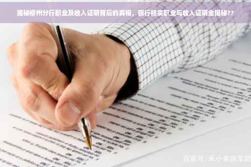摘要:柳州分行职业及收入证明背后的故事引人关注。银行在核实职业和收入证明时,会进行严格的审核程序,包括核实个人信息、工作单位、职位及薪资等。这一过程旨在确保信息的真实性和可靠性,以保障银行和客户的权益。揭秘这一过程,让我们更了解银行的工作机制。