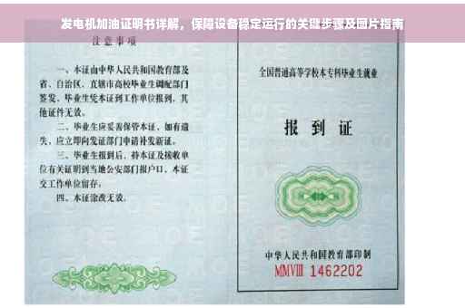 在当今社会,电力已成为人们日常生活和工作中不可或缺的重要资源,为了保证电力供应的稳定性,许多企业和机构都配备了发电机,而在发电机运行过程中,加油是一项至关重要的工作,为此,本文将详细介绍发电机加油证明书的重要性、作用以及办理流程,以确保设备的稳定运行。
