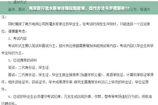 通过本文,您已经了解了南京银行如何拉流水,以及如何分析和注意事项,拉流水是了解账户状况的重要途径,希望您在拉流水的过程中能够顺利、便捷地获取到所需信息,学会分析银行流水,将有助于您更好地把握个人或企业的财务状况,为未来的决策提供依据。