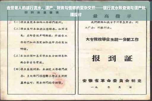 随着社会的快速发展,人们对于个人财产的管理日益重视,银行流水作为财务记录的重要部分,在诸多场合扮演着举足轻重的角色,当一位老人离世,其银行流水便成为遗产处理、债务清算等方面的重要依据,本文将围绕去世老人的银行流水展开探讨,涉及遗产处理、财务问题以及情感纠葛等多个层面,以期帮助读者更好地理解和应对相关情况。