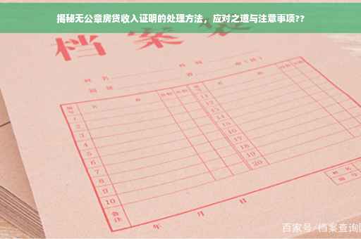 在申请房贷过程中,收入证明是必不可少的一环,有时候我们可能会遇到一些棘手的问题,比如收入证明上没有公章,这种情况该如何处理呢?本文将为您详细解析办理房贷收入证明没有公章的困扰,并探讨相应的解决方案。