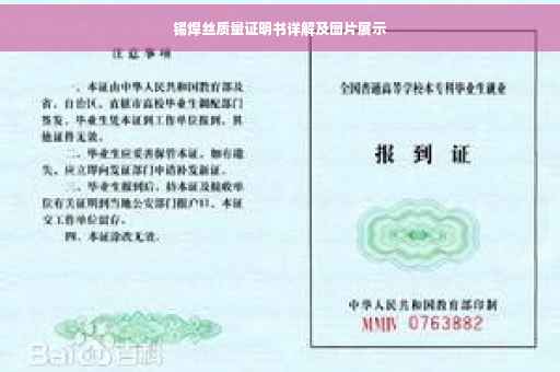 摘要:本文将详细介绍锡焊丝质量证明书,包括其重要性、具体内容以及证明书的图片。通过本文,读者可以了解锡焊丝质量证明书的作用,以及如何识别高质量的锡焊丝产品。还将简要探讨锡焊丝的应用领域及其质量对焊接效果的影响。