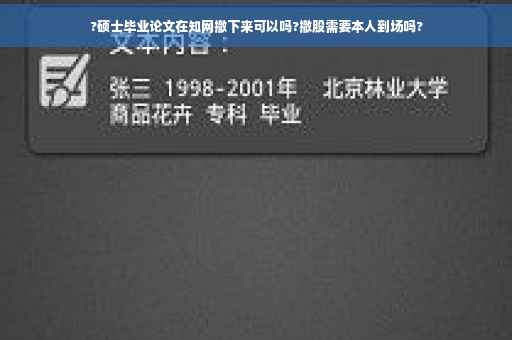 不可以的,因为数据毕业论文发表是要经过专家教授评审,如果这个时候撤下来,教授和专家们就看不到你的毕业论文,无法给你成绩,所以关系到你的前途和毕业证,暂时就不要把硕士毕业论文从知网上撤除。
