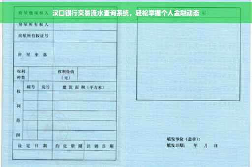 随着互联网的普及和数字化金融的飞速发展,越来越多的人开始关注个人金融信息的查询和管理,作为个人金融信息的重要组成部分,交易流水记录着我们的每一笔资金往来,对于个人财务的清晰把握具有重要意义,本文将详细介绍如何在汉口银行查询交易流水,帮助您轻松掌握个人金融动态。