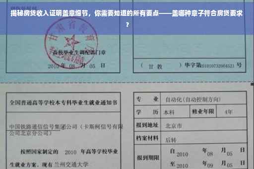 摘要:关于房贷收入证明盖章细节,重要的是了解应使用何种章子。一般而言,房贷收入证明需要单位公章或人事部门章,确保章的合法性和真实性。在盖章过程中,还需注意细节,如章的位置、清晰度等。了解这些细节有助于顺利办理房贷,避免不必要的麻烦。