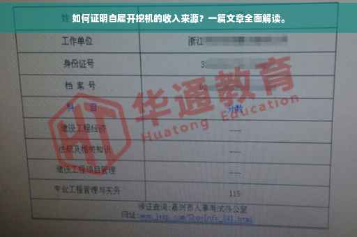 本文将介绍自己开挖机如何证明收入来源的方法。通过阅读本文,您将了解到如何收集和整理相关证据,包括工作记录、工程合同、银行流水等,以证明自己的收入状况。文章旨在帮助开挖机的个人或企业更好地管理财务,提高经济效益。本文简洁明了,易于理解,是了解该话题的入门指南。