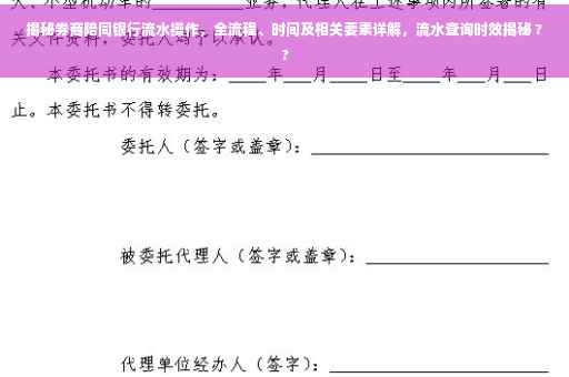 摘要:本文将揭示券商陪同银行流水操作的流程、时间及相关要素。文中将详细解析券商与银行的协作过程,包括流水操作的具体步骤和时间节点。读者将了解到银行流水查询的时间范围及限制。本文旨在帮助公众了解这一操作过程,增加透明度并减少误解。