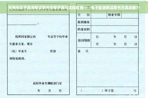 摘要:河南地区开具清税证明书的过程包括详细步骤与流程。需前往当地税务部门获取清税证明书的申请表格。填写完毕后,提交相关税务材料,如税务登记证、税务申报表等。审核通过后,税务部门将出具清税证明书。河南地区还提供电子版清税证明书,方便申请人在线申请并打印。整个过程旨在证明纳税人已履行税务义务,清税完毕。