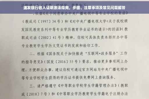 本文详细介绍了浦发银行激活收入证明的步骤、注意事项以及解决常见问题的办法,希望这些信息能帮助您顺利完成收入证明的激活,在办理过程中,如有任何疑问或需要帮助,请及时向浦发银行工作人员咨询,建议您关注浦发银行的官方信息渠道,以便及时了解最新动态和相关信息,祝您顺利办理业务!