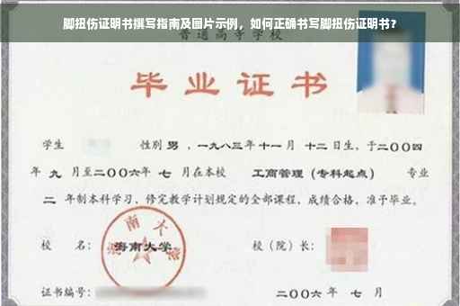 摘要:本指南旨在帮助撰写脚扭伤证明书,提供详细的撰写步骤和参考图片。通过本指南,您将了解如何正确记录脚扭伤情况,包括伤势描述、诊断结果和治疗建议等。本指南还将介绍如何获取相关的证明图片,以便更直观地展示伤势情况。帮助受伤者正确书写脚扭伤证明,以便进行后续治疗或工伤处理。