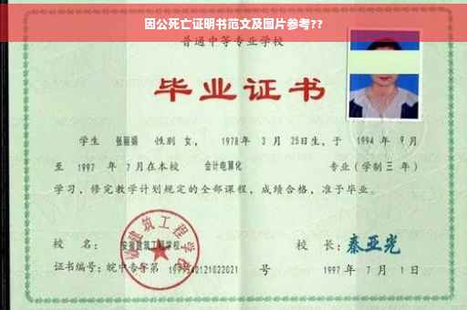 摘要:本文简要介绍了一份因公死亡证明书的范文,并附上了相关图片。该证明书是用于证明某员工在工作过程中因公死亡的重要文件。通过展示证明书的范文和图片,帮助人们了解证明书的格式和内容,以便在需要时能够正确、规范地填写和使用。