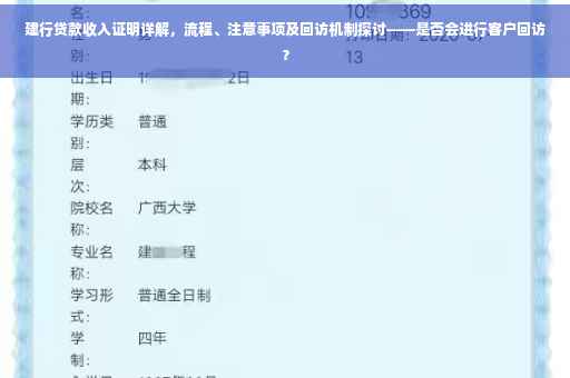 随着金融市场的日益繁荣,越来越多的人选择向银行申请贷款,建设银行作为国有大型商业银行,其贷款服务深受大众信赖,在申请贷款过程中,收入证明是至关重要的一环,本文将详细介绍建行贷款收入证明的的流程、注意事项,并重点解读收入证明中的回访机制。
