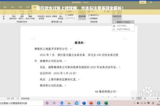 在上传银行流水时,需要注意文件的大小和格式,部分银行可能对上传的文件大小、格式有所限制,为确保顺利上传,请按照银行要求调整文件大小和格式。