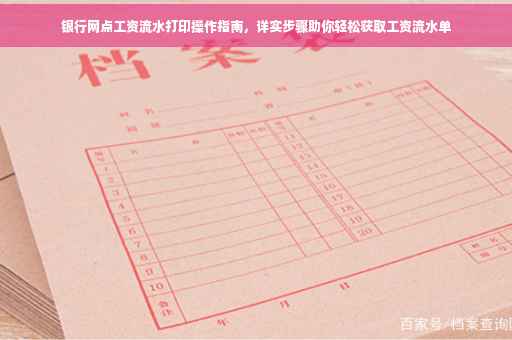 在现代社会,随着经济的发展和个人财务的日益复杂化,越来越多的人开始关注自己的工资流水情况,银行网点作为提供金融服务的重要场所,其工资流水打印服务也备受关注,本文将详细介绍在银行网点进行工资流水打印的步骤、注意事项等,以便广大市民更好地了解并顺利办理相关业务。