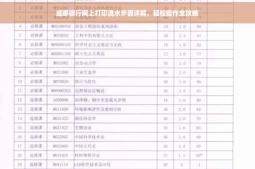 随着互联网的发展,越来越多的人开始注重线上服务的便捷性,成都银行作为一家服务优质的金融机构,其网上服务也备受关注,网上打印流水是许多用户经常需要操作的一项业务,本文将详细介绍成都银行网上打印流水的步骤和注意事项,帮助大家轻松完成操作。