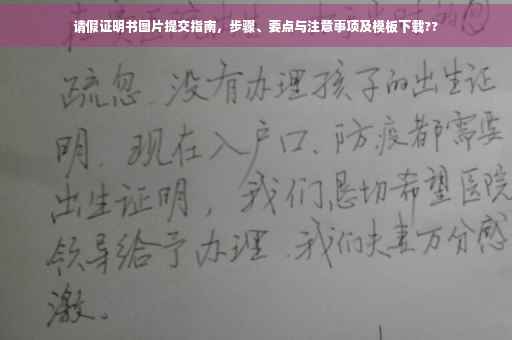 通过本文,我们了解了请假证明书的作用与种类,以及如何通过图片形式提交请假证明书,在实际操作中,请务必注意真实性、图片质量、提交渠道和提交时间等问题,以确保请假手续顺利完成,希望本文能帮助您更好地了解请假证明书图片提交的相关事宜,为您的请假过程提供便利。
