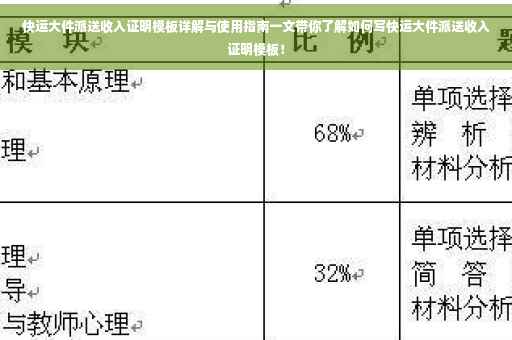 本文详细介绍了快运大件派送收入证明模板的各个方面,包括模板内容、使用指南和案例分析等,希望通过本文的介绍,能够帮助从事快运大件派送的工作人员更好地了解和使用收入证明模板,保障自身合法权益,也呼吁社会各方面给予快递从业者更多的关注和支持,共同推动快递行业的健康发展。