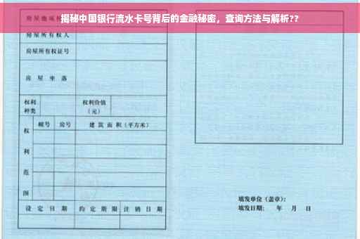 摘要:本文将为您揭秘中国银行流水卡号的查询方法,帮助您了解背后的金融秘密。通过简单的步骤,您将能够轻松查询自己的银行流水卡号。本文将指导您如何操作,以便您能够方便地管理您的财务信息和保障个人财产安全。