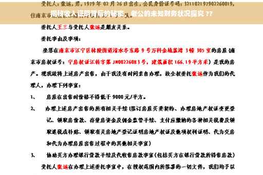 在这个充满竞争与压力的时代,许多家庭中的夫妻双方都在为生活奔波忙碌,一些看似微不足道的细节背后,可能隐藏着不为人知的秘密,本文将通过一位妻子对“老公不知道收入证明”这一话题的探讨,揭示出收入证明背后可能存在的种种真相,让我们一起揭开这神秘的面纱。