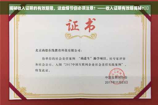 在现代社会,收入证明是我们生活中不可或缺的一部分,无论是求职、贷款、办理信用卡还是其他场合,收入证明都是证明自身经济实力和信用状况的重要依据,很多人对于收入证明的有效期存在疑惑,不知道应该使用多久之前的收入证明,以及收入证明的有效期限是多久,本文将详细解析收入证明的有效期问题,帮助你更好地理解和应用。
