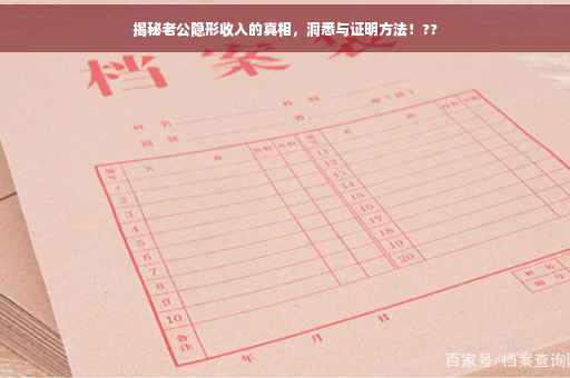 在婚姻生活中,财务透明化一直是维系关系和谐的重要因素之一,我们可能会怀疑自己的伴侣是否有隐形收入,这背后可能隐藏着诸多不为人知的秘密,本文将为你揭示如何洞悉并证明老公隐形收入的真相,帮助你维护自身权益和家庭和谐。