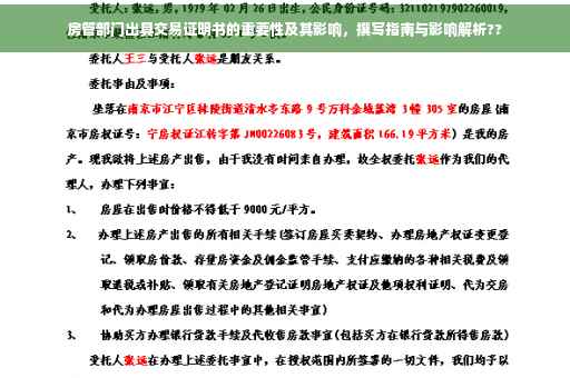 房管部门出具的交易证明书在房屋交易中扮演着举足轻重的角色,它不仅能够保障买卖双方的权益,简化交易流程,还能提高交易的透明度,维护市场秩序,在房屋交易中,买卖双方应充分重视交易证明书的办理,确保交易行为的合法性,房管部门也应加强对交易证明书的管理和监督,确保其真实有效,为房屋交易提供强有力的保障。