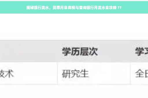 摘要:本文将详细介绍银行流水及其重要性,帮助读者洞悉月息真相。我们将解释如何查询银行月流水,包括在线和线下渠道。通过了解银行流水,读者可以更好地掌握个人财务状况,避免不必要的财务风险,并做出明智的金融决策。