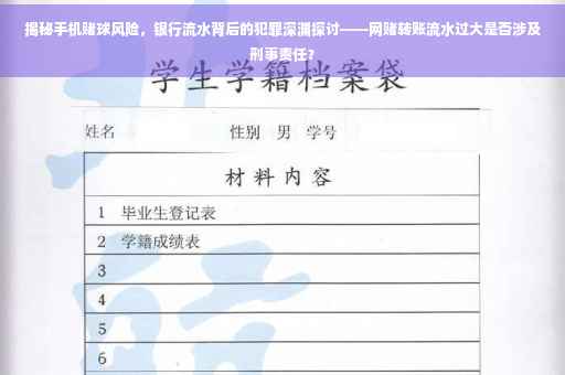 摘要:手机赌球背后隐藏着巨大的风险,许多人通过银行转账参与网赌,却忽略了其中的法律风险。如果银行流水过大,可能会面临牢狱之灾。我们应该警惕手机赌球和网赌的诱惑,切勿贪图一时之快而陷入犯罪的深渊。