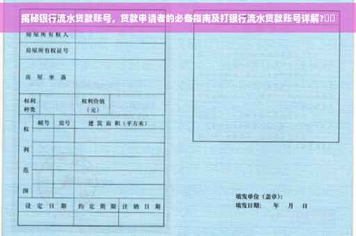 揭秘银行流水贷款账号,贷款申请者的必备指南。本文将详细介绍银行流水贷款账号的概念和作用,帮助申请者了解如何申请和使用该账号。通过本文,申请者可以了解如何正确打印银行流水账单,以及如何查询和解读贷款账号信息,从而顺利完成贷款申请。内容实用,语言简洁明了,为贷款申请者提供有力的指导。
