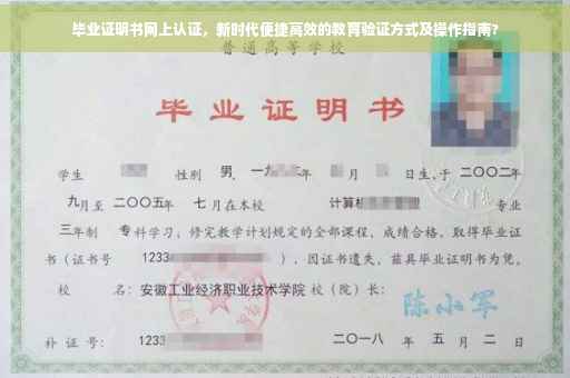随着信息技术的迅猛发展,互联网已经渗透到生活的方方面面,包括教育领域,毕业证明书网上认证作为新兴的教育验证方式,正受到越来越多人的关注和认可,它以其便捷、高效的特点,解决了传统认证方式中的繁琐和耗时问题,为广大学生和用人单位提供了极大的便利,本文将详细介绍毕业证明书网上认证的相关内容,以帮助大家更好地了解这一新兴认证方式。