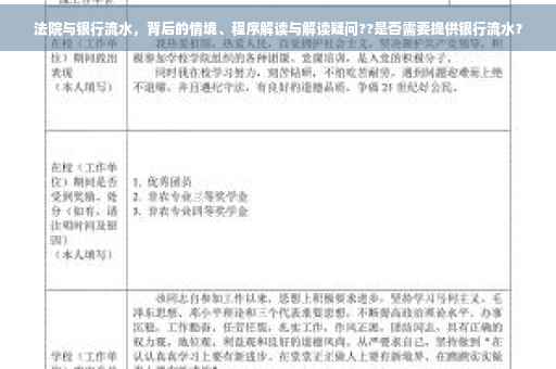 摘要:关于法院是否要求提供银行流水的问题,其实取决于具体案情和司法程序。在涉及财产分割、债务纠纷、经济犯罪等案件中,法院可能会要求当事人提供银行流水以证明其资金状况或资金来源。法院在特定司法程序下,如执行阶段,也可能调取银行流水以确认被执行人的财产情况。但具体情境和程序需依据法律规定和案件性质而定。
