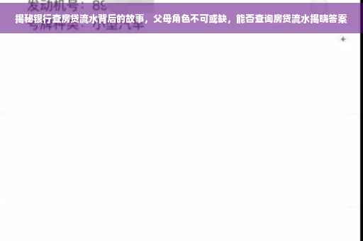 随着房价不断攀升,越来越多的人选择通过银行申请房贷来购买自己的房屋,在这个过程中,银行会通过各种方式评估申请人的还款能力,其中查房贷流水是最重要的一环,在这一环节中,父母的角色往往被忽视,本文将深入探讨银行查房贷流水背后的故事,揭示父母在申请房贷过程中扮演的重要角色。