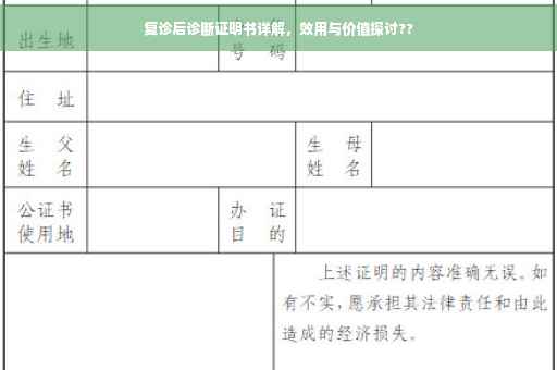 复诊后诊断证明书是医生对患者病情及康复状况的重要书面证明,对于患者的工作、学习以及保险理赔等方面具有重要影响,医生在撰写诊断证明书时,应严格遵守相关规范,确保信息的真实性和准确性,并注意保护患者的隐私,希望本文能够帮助读者更好地了解复诊后诊断证明书的撰写要点及相关注意事项。