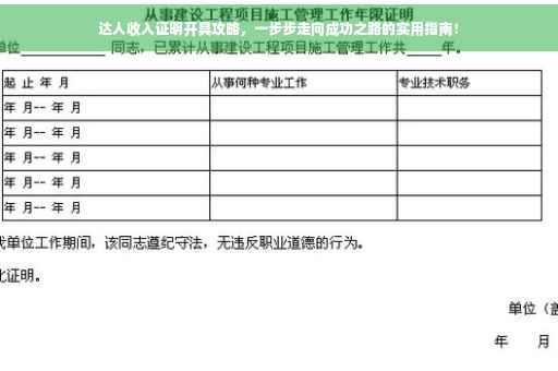 摘要:本文将指导达人如何开具收入证明,一步步引领你走向成功之路。明确收入证明的目的和重要性。介绍准备相关材料的过程,如身份证、银行账户信息等。详细说明收入证明的格式和内容要求,包括收入类型、金额等。强调诚信开具收入证明的重要性,并提醒达人注意细节和遵守相关规定,以确保收入证明的真实性和有效性。