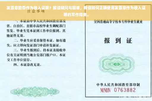 发票章能否作为收入证明是常见疑问。发票章主要用于确认发票的有效性,并不能直接作为收入证明。若需证明收入,应提供如工资单、劳动合同、银行流水等其他有效证明。关于如何书写相关内容,应清晰、简洁地阐述这一观点,并举例说明,以消除困惑。