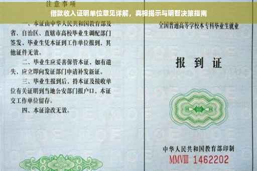 在当今社会,随着经济的发展和金融市场的繁荣,借款已成为人们生活中常见的现象,无论是购房、购车还是创业,借款都是实现目标的重要手段之一,而在借款过程中,收入证明是评估借款人信用状况的重要依据,本文将围绕借款收入证明单位意见这一主题,为您揭示真相,引导明智决策。