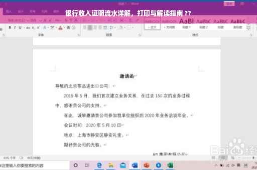在现代社会,银行收入证明流水在办理贷款、信用卡、签证以及部分工作应聘过程中发挥着举足轻重的作用,一份清晰、规范的银行收入证明流水,能够真实反映个人的经济状况和信用水平,为顺利办理各项事宜提供有力支持,本文将详细介绍如何正确打印银行收入证明流水,以及解读其中的关键信息。