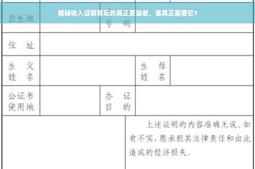 收入证明的受益群体包括贷款申请人、租房者、职场人士、签证申请人等各个层面的人群,这些人群在不同场合都需要通过收入证明来证明自己的经济状况或支付能力,对于个人来说,应妥善保管自己的收入证明,并在需要时及时提供,对于要求提供收入证明的机构,也应关注申请人的实际情况,避免给申请人带来不必要的困扰。