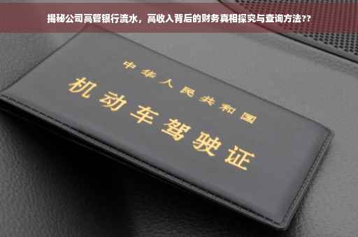 摘要:本文将探讨公司高管银行流水的查询方式,揭示高收入背后的财务真相。通过查询银行流水,可以了解高管的资金流向、收入构成以及支出情况,从而揭示其真实的财务状况。本文将介绍如何合法、合规地查询公司高管银行流水,帮助公众更加了解公司高管的财务状况。