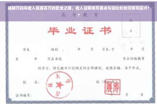 摘要:万科收入证明揭示年收入超两百万的职业之路。对于收入证明中的空白部分,可以填写具体的收入来源和金额,如工资收入、奖金、津贴等。通过万科的职业发展,展现高收入职业人士的工作经历、技能和职业素养,以及成功背后的努力和付出。也提醒人们在追求高收入的同时,注重个人职业规划和自我提升。