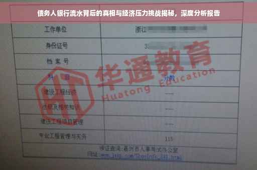 摘要:通过对债务人银行流水进行深入分析,揭示其背后隐藏的真相与经济压力的挑战。银行流水反映了债务人的收支状况、资金流动性和偿债能力。通过分析这些数据,可以揭示债务人在经济压力下的真实状况,包括收入不足、支出过高或资金周转困难等问题。对于债权人而言,了解债务人的银行流水情况有助于评估其还款能力和风险水平,从而做出更明智的决策。