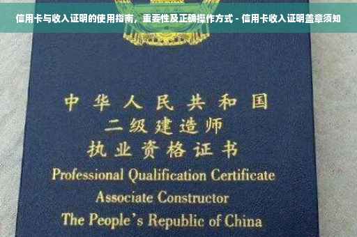 摘要:,,本文介绍了信用卡和收入证明的重要性,并提供了正确使用信用卡和收入证明的指南。文章指出信用卡在现代社会中的普及程度越来越高,正确使用信用卡可以提高个人信用评级和信用额度,而收入证明则是申请贷款或信用卡时的重要证明材料。文章还介绍了如何正确盖章收入证明,并提醒读者在使用信用卡时要注意避免过度消费和欠款。本文旨在帮助读者更好地理解和使用信用卡和收入证明,提高个人财务管理能力。