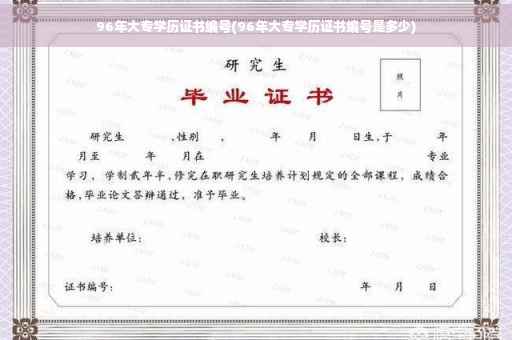 到此,以上就是小编对于96年大专学历证书编号的问题就介绍到这了,希望介绍关于96年大专学历证书编号的5点解答对大家有用。