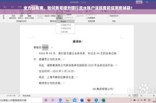遵循本文介绍的策略与技巧,您将能更好地管理银行流水账号,提高账户活跃度和信用评级,为您的个人金融生活品质提升助力。
