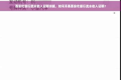 随着金融行业的快速发展,越来越多的人开始关注个人信用体系建设,作为信用体系的重要组成部分,银行流水收入证明在日常生活和工作中扮演着越来越重要的角色,特别是在西安这座古老而充满活力的城市,许多人在办理贷款、信用卡、签证以及求职等事务时,都需要提供银行流水收入证明,本文将详细介绍西安代银行流水收入证明的相关知识,帮助大家更好地了解这一金融证明的作用和办理流程。