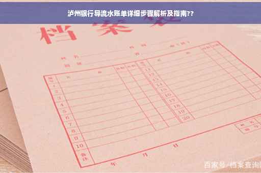 亲爱的读者朋友们,您好!我们将为您详细介绍如何在泸州银行导出流水账单,无论您是进行个人财务管理、申请贷款还是其他需要流水账单的场合,这篇攻略都将为您提供详尽的步骤和注意事项,请跟随我们一起了解如何轻松导出泸州银行的流水账单。