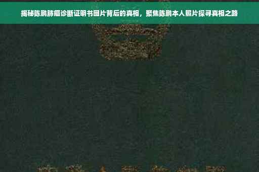 摘要:陈鹏的肺癌诊断证明书图片引发关注,背后隐藏着真相。通过揭秘相关图片和本人照片,揭示陈鹏的病情真相,引起社会对于癌症问题的关注和思考。也提醒公众在信息传播中要理性对待,避免盲目猜测和炒作。