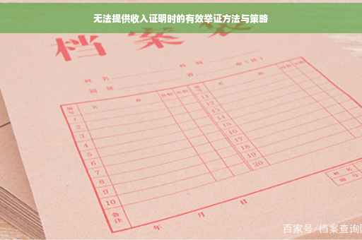 无法提供收入证明时,仍可通过其他有效方式进行举证。包括提供个人银行账户交易记录、税务缴纳证明、工作合同或劳动合同、社保缴纳记录等,以证明个人收入状况。在无法提供收入证明的情况下,务必保持相关证据的真实性和完整性,以便有效证明个人经济状况。