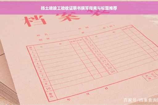 摘要:挡土墙竣工验收证明书是对挡土墙建设项目完成并经过验收的正式证明文件。证明书的撰写应简洁明了,包含工程名称、验收时间、验收地点、参与验收的单位和个人、验收结果及意见等内容。证明书中应明确挡土墙建设符合相关规范和要求,工程质量合格,并具备安全使用条件。本文提供了挡土墙竣工验收证明书的写作指南,以帮助读者规范撰写证明书。